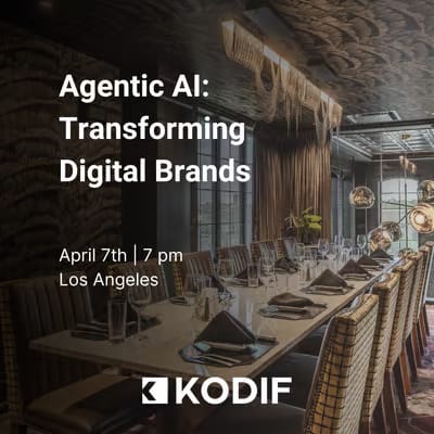 Join us for an intimate evening of fine dining and conversation with fellow industry leaders. Enjoy a delicious steakhouse dinner in Marina del Rey while gaining valuable insights from peers on how Agentic AI is transforming digital brands.
