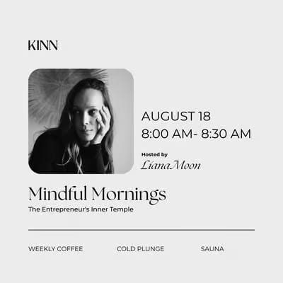 Guided breath work and meditation experience designed for The KINN community. Access the power within you to align with what truly matters. In these sessions, you’ll reconnect with your inner compass and gain the clarity needed to make bold, aligned decisions for yourself and your company.
