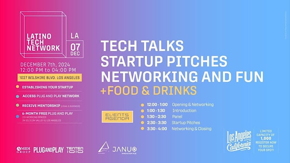 Join us for an inspiring and dynamic event, "Latino Tech Talks," where innovation meets entrepreneurship! This event is dedicated to celebrating and empowering the Latino community in the tech industry. Attendees will have the unique opportunity to hear from successful founders who have navigated the challenges of growing a business and are now leading the way in their respective fields.