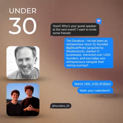 Networking can be intimidating, especially for young entrepreneurs. Founders Under 30 creates a fun, relaxed space to connect, learn, and grow with like-minded peers—whether you're building a startup, just getting started, or hustling to create opportunities for yourself. Even if you’re not in business and aspire to be a musician, actress, or model, Under 30 is a community for you.